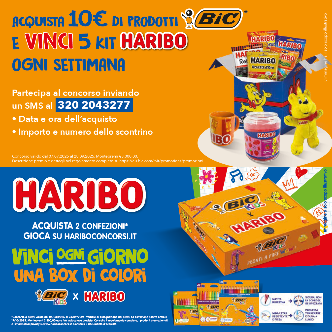 Per i clienti BIC ed HARIBO in occasione del Back To School 2025 abbiamo attivato una iniziativa di Cross Co-Marketing con l’obbiettivo di incentivare l’acquisto di entrambi i prodotti; sono state create delle fantastiche BOX BIC and HARIBO da inserire nei reciproci concorsi Bic regala Haribo ed Haribo regala Bic! 😉